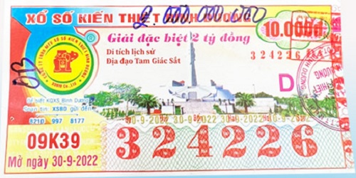 Công ty TNHH MTV Xổ số Kiến thiết Bình Dương: Công bố thông tin trả thưởng kỳ vé 09K39 ngày 30/09/2022