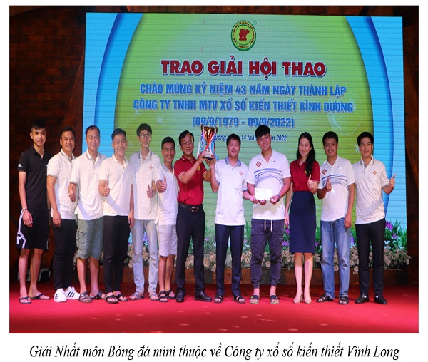 Sáng ngày 14/9/2022, Công ty TNHH MTV Xổ số Kiến thiết Bình Dương đã tổ chức Hội thao giao lưu 03 công ty xổ số cùng ngày thứ Sáu, gồm Bình Dương, Vĩnh Long và Trà Vinh. Đây là hoạt động nằm trong khuôn khổ các hoạt động chào mừng kỷ niệm 43 năm Ngày thành lập Công ty XSKT Bình Dương (09/9/1979 – 09/9/2022).