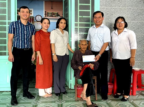 Tổ Công đoàn Phòng Hành chính Quản trị thăm và tặng quà Mẹ VNAH Nguyễn Thị Định, phường Lái Thiêu, TP. Thuận An.