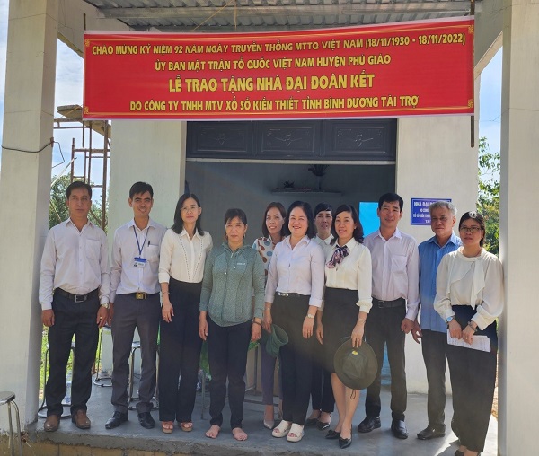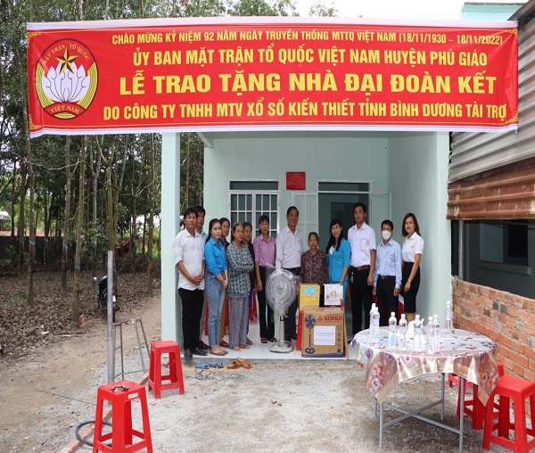 Ngày 14/11/2022, Công ty TNHH MTV Xổ số kiến thiết Bình Dương phối hợp cùng Uỷ ban Mặt trận Tổ quốc Việt Nam huyện Phú Giáo, tỉnh Bình Dương tổ chức lễ trao tặng 11 nhà Đại đoàn kết cho hộ nghèo khó khăn về nhà ở tại huyện Phú Giáo. Đây là các căn nhà Đại đoàn kết do Công ty TNHH MTV Xổ số kiến thiết Bình Dương tài trợ xây dựng, kinh phí xây dựng mỗi căn là 100 triệu đồng.