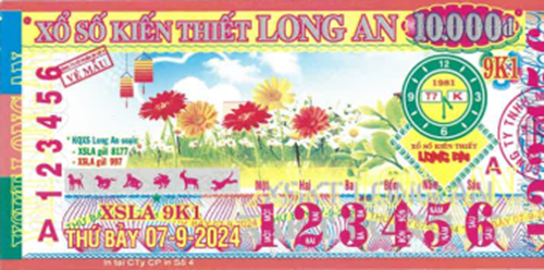 - Công ty TNHH MTV Xổ số kiến thiết Long An: Kỳ vé 9K1 mở thưởng ngày 07/09/2024. Khách hàng ở huyện Đức Hòa, tỉnh Long An đã trúng thưởng.