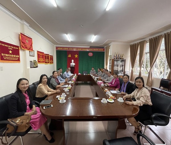 Ban Lãnh đạo Công ty XSKT Đồng Nai đang trao đổi kinh nghiệm kinh doanh loại hình vé số bóc tại Công ty XSKT Lâm Đồng