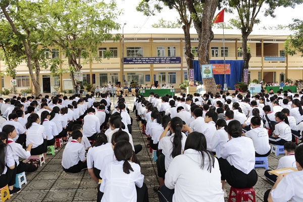 Đặc biệt trong dịp này, Công ty TNHH MTV Xổ số kiến thiết tỉnh Bà Rịa - Vũng Tàu đã tặng 500 mũ bảo hiểm và 10.000 cuốn vở cho các em học sinh có hoàn cảnh khó khăn, học giỏi ở trường Trung học cơ sở Kim Long.