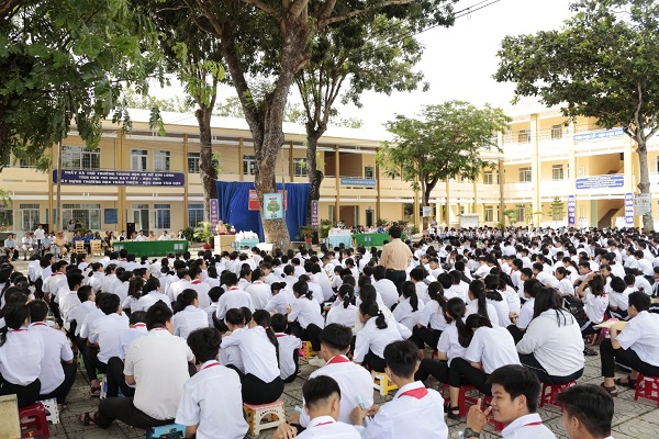 Các đại biểu và giáo viên, học sinh trường Trung học cơ sở Kim Long