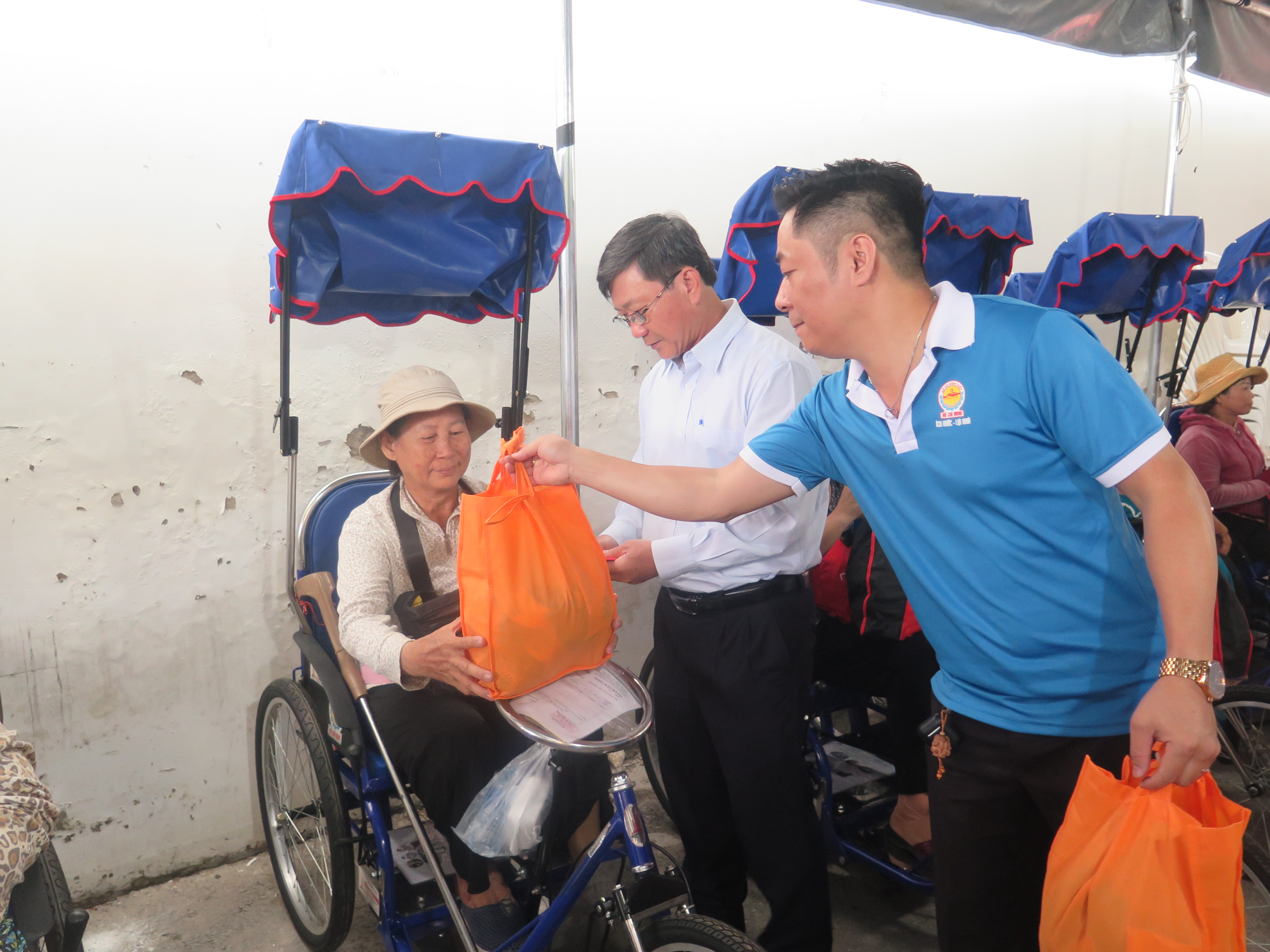Trao tặng xe lăn cho người bán vé sô khuyết tật.