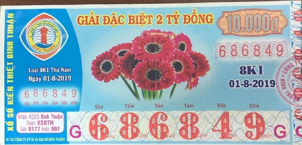 - Công ty Xổ số Kiến thiết tỉnh Bình Thuận: Công bố thông tin trả thưởng kỳ vé 8K1
