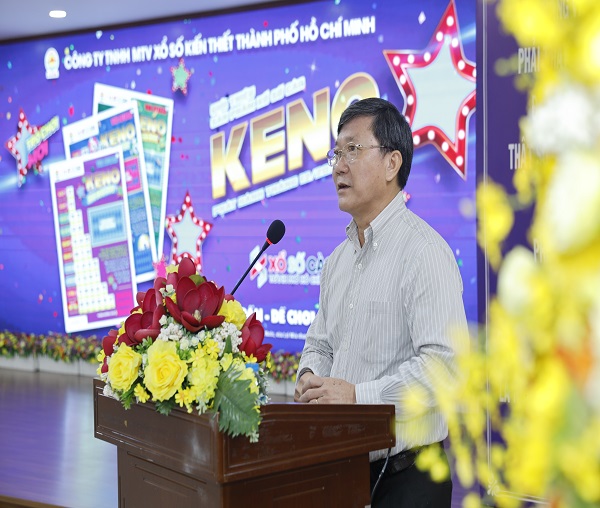 Ông Đỗ Quang Vinh, Giám đốc Công ty Xổ số kiến thiết TP.HCM giới thiệu về sản phẩm mới "Xổ số cào biết kết quả ngay KENO"