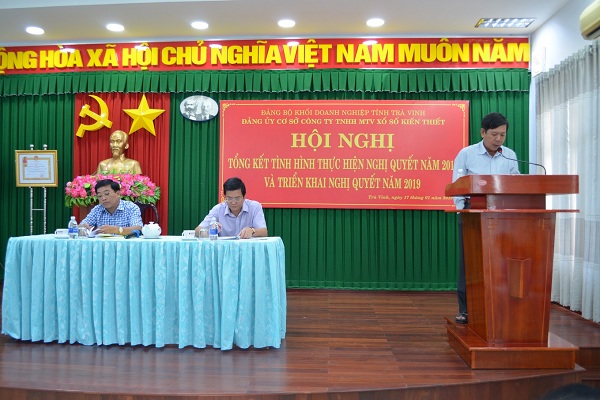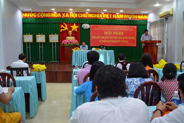 Phát biểutại Hội nghị,đồng chí Nguyễn Quốc Vạn, PhóBí thưĐảng ủy Khối Doanh nghiệp tỉnhTrà Vinhđánh giá cao những kết quả mà Đảng bộ đạt được trong năm 2018. Đồng thời, đồng chí cũng định hướng một số nội dung Đảng bộ cần thực hiện trong thời gian tới: Nâng cao chất lượngcông táctriển khai và cụ thể hóa các văn bản của Đảng ủy cấp trên; quan tâm nắm tình hình tư tưởng cán bộ, đảng viên và người lao động, để định hướng công tác giáo dục chính trị tư tưởng; đảng viên cần chất vấn sâu về công tác lãnh chỉ đạo, điều hành của Đảng ủy và từng cá nhân Đảng ủy viên về thực hiện nhiệm vụ được giao; nâng cao chất lượng sinh hoạt chuyên đề của các chi bộ; công táckiểm tra, giám sátcấp ủy cùng cấp và đảng viên;Đảngủy cần chỉ đạotất cảchi bộ trực thuộc và đảng viên, người lao động trong Công ty phảinâng cao hiệu quả thực hiện mô hìnhhọc tập và làm theo tư tưởng, đạo đức, phong cách Hồ Chí Minh,…