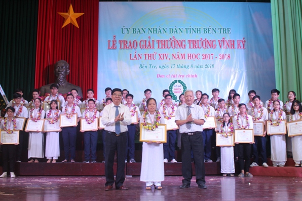 Sáng ngày 17/8/2018, tại Hội trường UBND tỉnhBến Tre, Sở Giáo dục và Đào tạo phối hợp với Hội Khuyến học tỉnh tổ chức Lễ trao giải thưởng Trương Vĩnh Ký lần thứ XIV năm học 2017- 2018.