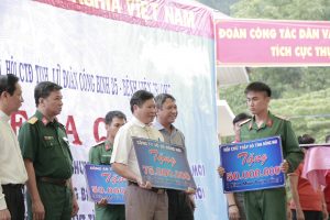Tiếp sau đó, Công ty phối hợp cùng Bộ CHQS tỉnh Đồng Nai thực hiện công tác dân vận Chung sức xây dựng nông thôn mới tại xã Phú An, huyện Tân Phú trong đợt 27/7/2018.