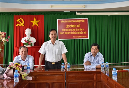 Ngày 02/8/2018, Ban Thường vụ Đảng ủy Khối Doanh nghiệp tỉnh đã tổ chức Lễ công bố quyết định Bí thư, Phó Bí thư, Ủy viên Ban Thường vụ Đảng ủy Công ty TNHH MTV Xổ số Kiến thiết Đồng Tháp.