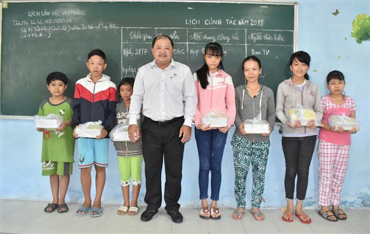 Ông Ngô Thanh Trí,Phó Giám đốc Công ty, trao quà cho các em