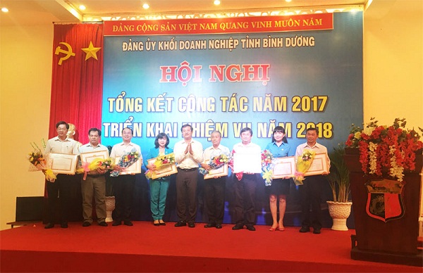 Ngày 23/01, tại Hội nghị lần thứ mười hai của Ban chấp hành Đảng bộ khối Doanh nghiệp tỉnh Bình Dương, Đảng bộ Công ty TNHH MTV Xổ số kiến thiết Bình Dương đã vinh dự được tặng Giấy khen Đảng bộ đạt tiêu chuẩn “Trong sạch vững mạnh tiêu biểu” năm 2017 và Giấy khen về thành tích xuất sắc trong việc thực hiện Kế hoạch số 06-KH/ĐUK ngày 12/4/2016 của Đảng ủy khối về mô hình “Vì người lao động” năm 2017.