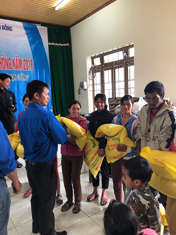 Đoàn trao tặng quà cho các gia đình có hoàn cảnh khó khăn