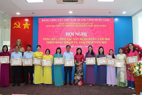 Với những thành tích đã đạt được trong năm 2024, Đảng bộ Công ty được xếp loại Hoàn thành xuất sắc nhiệm vụ, được Ban Thường vụ Đảng ủy khối Doanh nghiệp khen thưởng; 01 cá nhân đang được đề nghị tặng Bằng khen của Tỉnh ủy Bình Dương về thành tích 05 năm liên tục hoàn thành xuất sắc nhiệm vụ. Về phía Đảng ủy, đã quyết định khen thưởng 01 Chi bộ, 14 đảng viên hoàn thành xuất sắc nhiệm vụ; biểu dương 04 Chi bộ và 20 đảng viên.