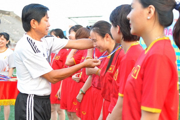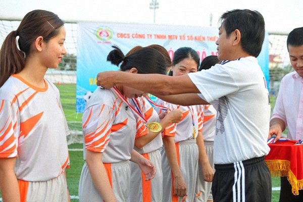 Trao thưởng cho vận động viên và thủ môn xuất sắc trong giải bóng đá nữ chiều ngày 8/3.