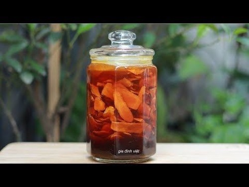 Rửa sạch nghệ, gọt vỏ, cắt lát mỏng và xếp vào lọ thủy tinh.