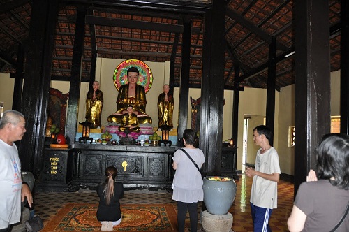 Khách thập phương dâng hương cầu khấn tại ban thờ chánh điện