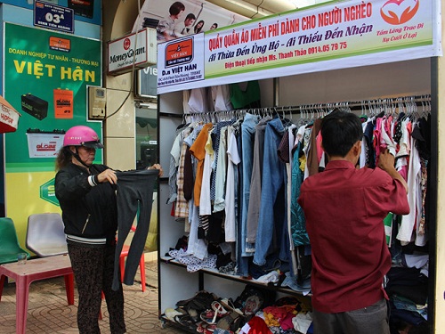 Từ lâu trên đường phố đã xuất hiện những bình nước trà đá, thùng bánh mì, nồi cháo thịt bằm, tủ áo quần, tiệm sửa chữa giày dép, tủ thuốc Tây… được đề thêm dòng chữ “ từ thiện - miễn phí”. Thật ấm áp nghĩa tình đối với những mảnh đời tha hương cầu thực.