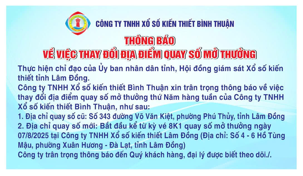 Thông Báo Công ty xổ số Kiến thiết tỉnh Tiền Giang