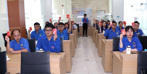 Đoàn viên Chi đoàn Công ty tham gia bỏ phiếu bầu cử và biểu quyết tại Đại hội