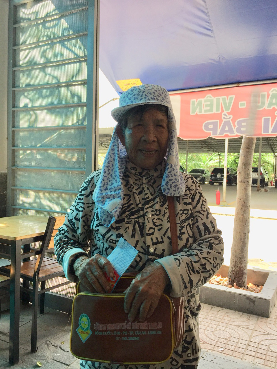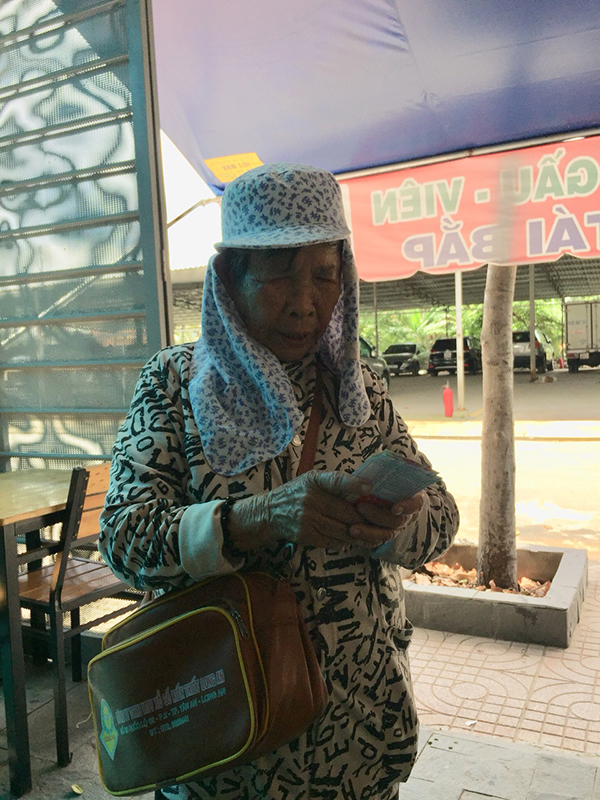 Tôi hỏi bà cao tuổi rồi, đi bán vậy có mệt không, bà cười nói: “Tôi năm nay tám mươi mấy tuổi rồi, sinh năm 1932 đó, tôi nói thật mà nhiều người không tin. Cónhiềungười hỏi tôi sao nhìn trẻ hơn tuổi và khỏe vậy. Tôi nói nhờ đi…bán vé số dạo”. Bà cười rất tươi.