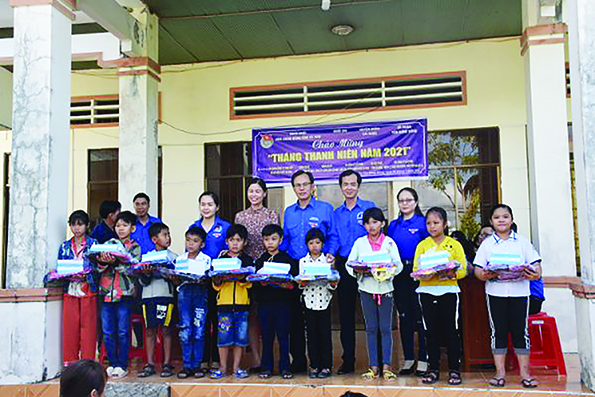 Đại diện Công ty trao tặng quà cho trẻ em nghèo nhân “Tháng Thanh niên 2021"