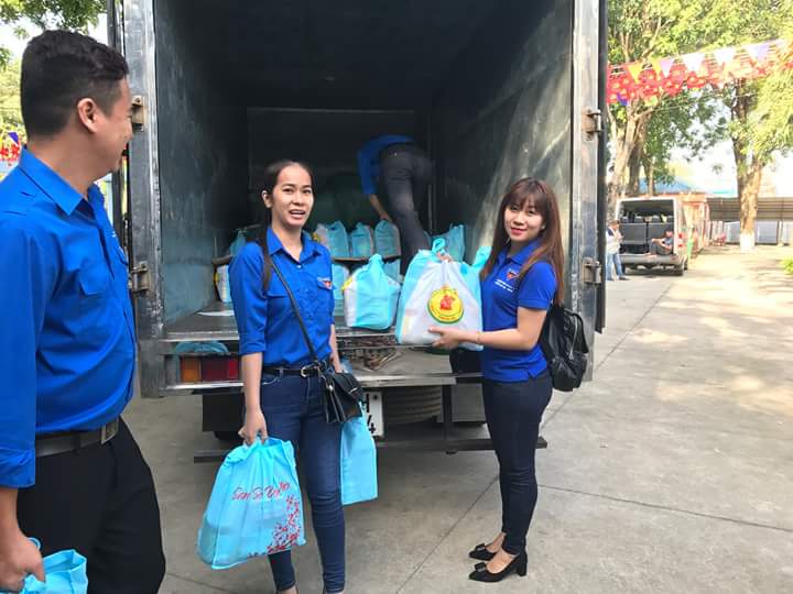 Đoàn viên đang chuẩn bị quà tặng người bán vé số dạo