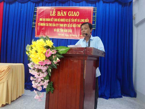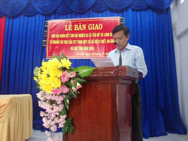 Sáng ngày 26/12/2018, tại xã Tấn Mỹ Ủy ban MTTQ huyện Chợ Mới, tỉnh An Giang tổ chức lễ bàn giao 83 căn nhà“Đại đoàn kết”chongười nghèo 02 xã Tấn Mỹ và Long Kiến, huyện Chợ Mới trong chương trình tài trợ đối ứng nhà cho người nghèo năm 2018 giữa Công ty TNHH MTV Xổ số Kiến thiết An Giang và các Công ty xổ số kiến thiết: Bình Thuận, Bình Phước, Lâm Đồng, Tây Ninh, Trà Vinh, Vĩnh Long và Sóc Trăng.
