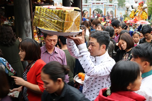 Khách thập phương dâng lễ “Vay tiền – trả lễ” ở đền Bà Chúa Kho.