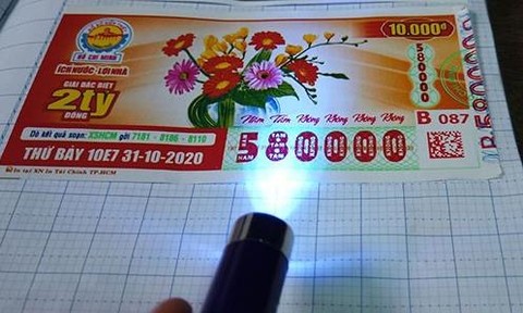Dùng đèn tia cực tím để phát hiện vé số giả