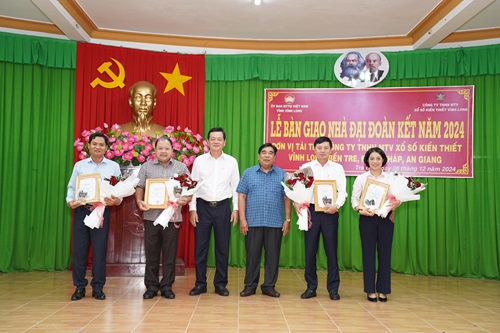Công ty TNHH MTV xổ số kiến thiết Đồng Tháp: Trao tặng 10 căn nhà Đại đoàn kết tại tỉnh Vĩnh Long.
