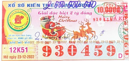 Công ty TNHH MTV Xổ số Kiến thiết Bình Dương: Công bố thông tin trả thưởng kỳ vé 12K51 ngày 23/12/2023