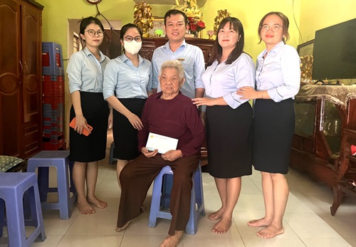 Tổ Công đoàn Phòng Kế hoạch Kinh doanh thăm và tặng quà cho Mẹ liệt sĩ Huỳnh Thị Bảy, xã Tân Hiệp, huyện Phú Giáo