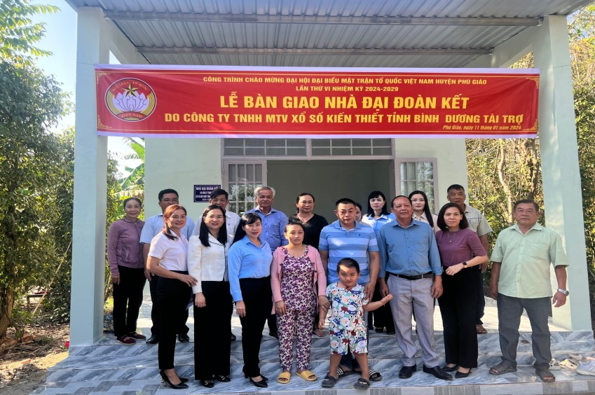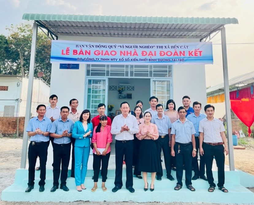 Công ty TNHH MTV Xổ số kiến thiết Bình Dương (Công ty) đã phối hợp cùng Ủy ban Mặt trận Tổ quốc Việt Nam các huyện, thị, thành phố trên địa bàn tỉnh Bình Dương tổ chức bàn giao 13 căn nhà Đại đoàn kết cho các hộ nghèo, hộ khó khăn về nhà ở.