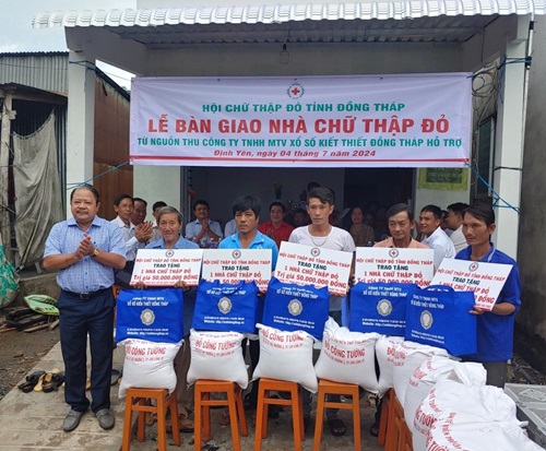 Thực hiện chương trình phối hợp giữa Công ty TNHH MTV Xổ số kiến thiết Đồng Tháp và Hội Chữ Thập đỏ Tỉnh về xây dựng nhà Chữ thập đỏ cho hộ nghèo, cận nghèo trên địa bàn tỉnh Đồng Tháp, sáng ngày 04 tháng 7 năm 2024, Công ty TNHH MTV Xổ số kiến thiết Đồng Tháp phối hợp với các cấp chính quyền địa phương tổ chức trao tặng 05 căn nhà Hội Chữ Thập đỏ cho05 hộ nghèo, cận nghèo của xã Định Yên, huyện Lấp Vò.
