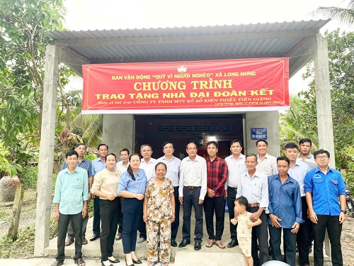 Vừa qua, Công ty TNHH MTV Xổ số kiến thiết Tiền Giang phối hợp cùng Uỷ ban Mặt trận Tổ quốc Việt Nam xã Long Hưng, huyện Châu Thành tổ chức lễ bàn giao nhà Đại đoàn kết cho hộ bà Nguyễn Thị Mai, sinh năm 1972, ngụ ấp Long Thới, xã Long Hưng, huyện Châu Thành, tỉnh Tiền Giang, thuộc diện hộ nghèo đăng gặp khó khăn về nhà ở.