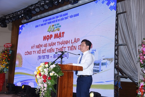 Phát biểu tại lễ kỷ niệm, đồng chí Trần Văn Dũng - Ủy viên Ban Thường vụ Tỉnh ủy, Phó Chủ tịch Thường trực UBND tỉnh, Chủ tịch Hội đồng Giám sát xổ số tỉnh Tiền Giang đánh giá và ghi nhận những thành quả rất đáng trân trọng của các thế hệ lãnh đạo Hội đồng Giám sát xổ số tỉnh; lãnh đạo, cán bộ, công nhân viên của Công ty TNHH MTV XSKT Tiền Giang qua các thời kỳ và Hệ thống đại lý vé số trong suốt hành trình 45 năm qua của Xổ số kiến thiết Tiền Giang, luôn lấy mục tiêu “Ích nước - Lợi nhà” làm phương châm hoạt động, góp phần đáng kể trong quá trình phát triển kinh tế - xã hội tỉnh nhà.Đặc biệt, nguồn thu từ XSKT đã đóng góp hằng năm chiếm từ 20% - 25% trong tổng nguồn thu ngân sách, góp phần cân đối ngân sách địa phương. Sự huy động nguồn lực tài chính thông qua hoạt động XSKT đã tạo nguồn vốn quan trọng để đầu tư cho các công trình trọng điểm, các chương trình kinh tế có tính đột phá của tỉnh.Trong thời gian tới, Công ty tiếp tục phát huy những thành quả đã đạt được, đồng thời xây dựng tư duy đổi mới sáng tạo, áp dụng khoa học công nghệ trong bối cảnh hội nhập quốc tế.