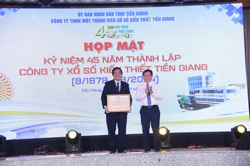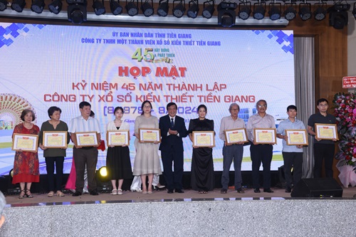 Nhân dịp này, UBND tỉnh tặng Bằng khen cho 1 tập thể và 61 cá nhân có nhiều đóng góp tích cực trong quá trình hình thành và phát triển Công ty TNHH MTV XSKT Tiền Giang.