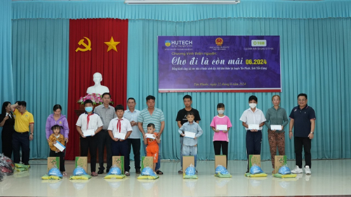 Ngày 22/6/2024, Công ty TNHH Xổ số kiến thiết Bình Thuận phối hợp cùng Hội Cựu sinh viên, Câu lạc bộ doanh nhân Hutech tổ chức chương trình thiện nguyện trao tặng 30 suất quà với tổng số tiền là 15 triệu đồng cho các em nhỏ và các hộ gia đình có hoàn cảnh khó khăn trên địa bàn huyện Tân Phước, tỉnh Tiền Giang(một trong những địa bàn thị trường hoạt động kinh doanh của Công ty tại miền Tây).