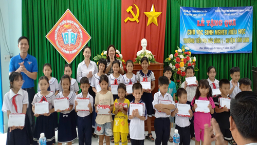 Công ty TNHH MTV Xổ số kiến thiết tỉnh Đồng Tháp trao học bổng “Thắp sáng ước mơ” tại xã Hòa An, Thành phố Cao Lãnh.