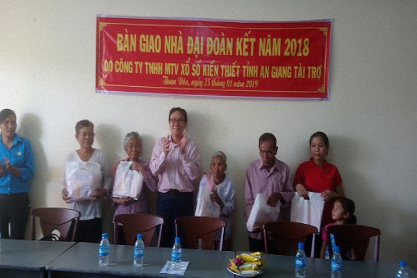 Trong đơt này, Công ty TNHH MTV Xổ số Kiến thiết An Giang bàn giao 10 căn nhà Đại Đoàn kết trị giá 400 triệu đồng(40 triệu đồng/căn)cho người nghèo trên địa bàn huyện Mỹ Xuyên và TP. Sóc Trăng, tỉnh Sóc Trăng và 05 căn nhà Nhân ái(30 triệu đồng/ căn)cho đoàn viên thanh niên có hoàn cảnh khó khăn trên địa bàn huyện Càng Long và Trà Cú, tỉnh Trà Vinh.