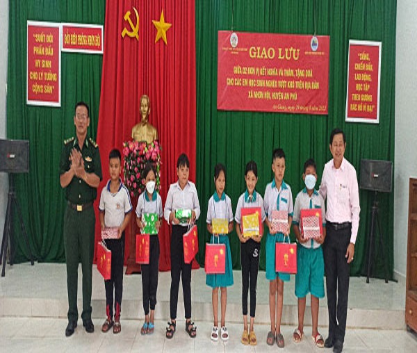 Ông Trần Văn Lắm- Bí thư Đảng uỷ- Chủ tịch công tyvà Trung tá Đinh Quang Điềm-Đồn trưởngcùng nhiều cán bộ lãnh đạo Công ty Xổ số kiến thiết An Giang, cán bộ chiến sĩ Đồn Biên phòng Nhơn Hội tham dự.Dịp này, Công ty còn kết hợp trao tặng 2.000 quyển tập cho các em học sinh nghèo vượt khó trong học tập ở 2 trường Tiểu học “A” và “B” Nhơn Hội trước thềm năm học mới, qua đó phát huy tinh thần“Vì đàn em thân yêu”, chăm lo cho những “mầm non đất nước” của mỗi đoàn viên, thanh niên dành cho các em; góp phần tạo động lực cho các em vượt khó, vươn lên trong học tập và trong cuộc sống.