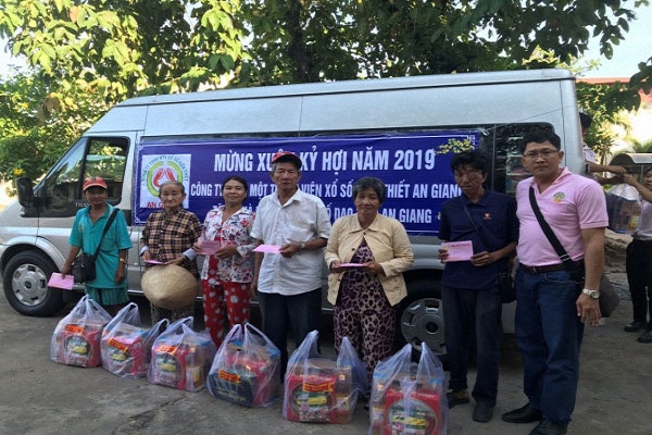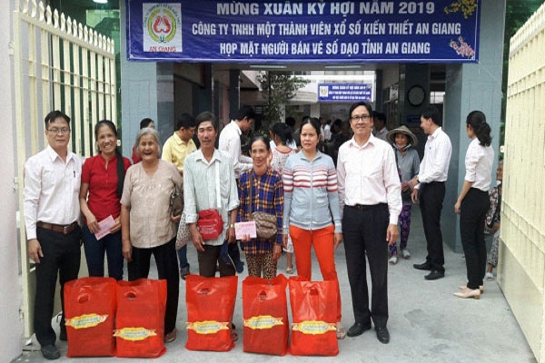 Nhân dịp Tết Kỷ Hợi 2019, Công ty TNHH MTV Xổ số Kiến thiết An Giang tổ chức họp mặt và tặng quà cho người bán vé số dạo trong tỉnh An Giang.