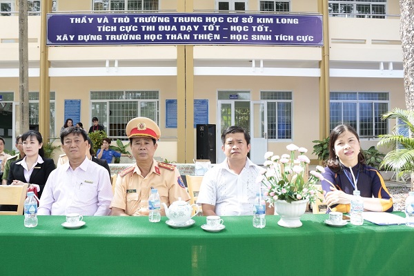 Tham dự buổi tuyên truyền có ông Dương Minh Tú - Chủ tịch kiêm Giám đốc Công ty TNHH MTV Xổ số kiến thiết tỉnh BR-VT; Đại tá Lê Văn Ninh - Trưởng phòng Cảnh sát giao thông Công an tỉnh BR-VT; Ông Nguyễn Minh Tú - Phó Bí thư Đảng ủy - Chủ tịch UBND xã Kim Long cùng các cán bộ Phòng Cảnh sát giao thông Công an tỉnh, các thầy cô giáo trường THCS Kim Long và 700 em học sinh toàn trường.