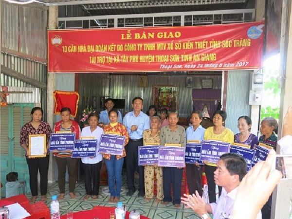 Ngày 23-8-2017, công ty Xổ số Kiến thiết Sóc Trăng đã tổ chức trao tặng 10 căn nhà Đại đoàn kết và quà cho một số gia đình chính sách tại hai tỉnh bạn An Giang và Tây Ninh.