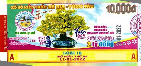 - Công ty Xổ số Kiến thiết tỉnh Bà Rịa - Vũng Tàu: Công bố thông tin trả thưởng kỳ vé 1B-2022