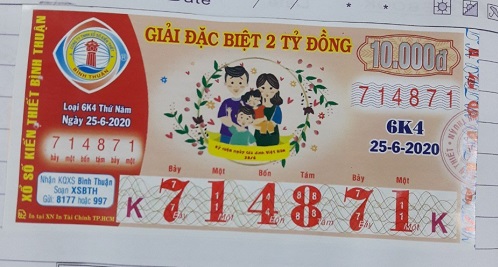 - Công ty Xổ số Kiến thiết tỉnh Bình Thuận: Công bố thông tin trả thưởng kỳ vé 6K4