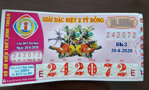 - Công ty Xổ số Kiến thiết tỉnh Bình Thuận: Công bố thông tin trả thưởng kỳ vé 8K3