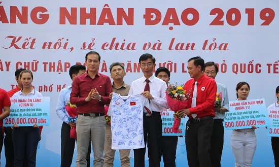 Tại lễ phát động Tháng Nhân đạo 2019 vừa qua, Công ty TNHH MTV Xổ số Kiến thiết TPHCM đã trao tặng 3 tỷ đồng cho Hội Chữ thập đỏ TPHCM.